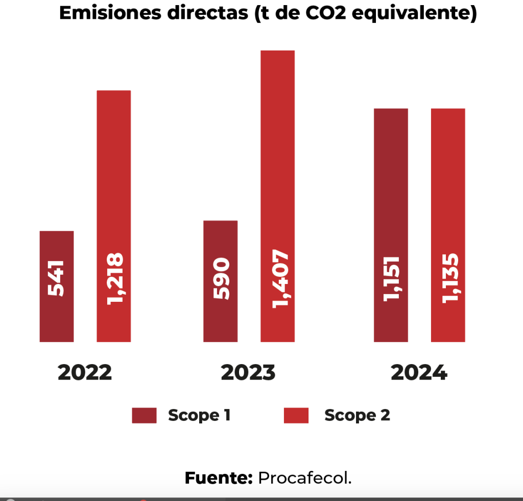 El consumo de combustible de la torrefactora fue de 2,9 kg de GLP/saco de café tostado, 52,1% menos vs. 2023, gracias a pruebas con una nueva línea de tostión de mayor capacidad, optimizando la eficiencia energética.